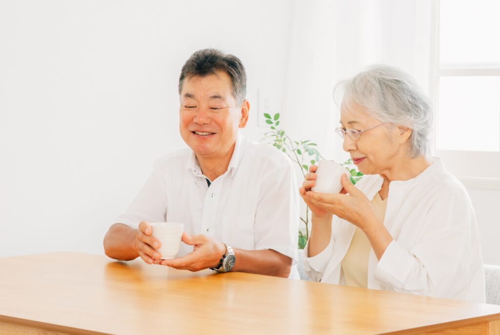 お茶を飲みながら楽しい時間を過ごします。